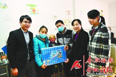 昨天上午,合肥百大集团“满天星”志愿服务队的代表一大早从合肥出发来到了上海儿童医院,看望正在这里治疗的黄缪扬小朋友。