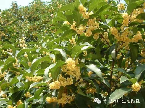 早晨,刚刚来到园区大门,一阵风就轻轻走来,带来满满的香甜的味道。随着这香味寻去,原来是藏在枝叶之间一朵朵黄色的小花,一簇簇地竞相盛开着。远远望去,仿佛绿叶丛中点缀着碎金,在秋日的晨光下,满树的小小花朵闪烁着淡淡金色的光芒,不是非常的耀眼,却是特别的美!